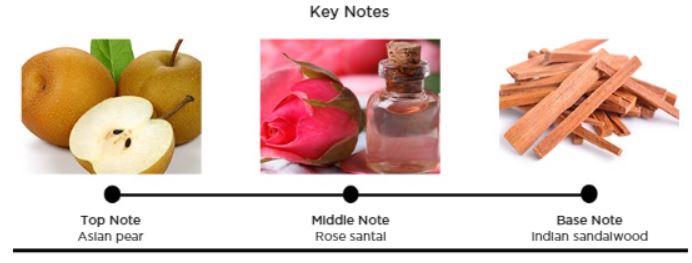 Unexpected and immediately intriguing Santal Musk opens with fresh Asian Pear combination with green bamboo.