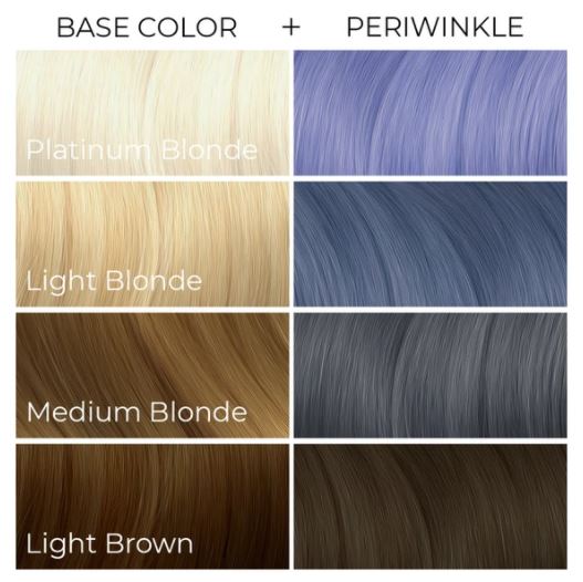 Watch the clouds go by with hair the color of the sky. Periwinkle is a dreamy pastel blue with lavender undertones that will turn out best on platinum hair, and generally won’t take to hair any darker than a level 9.