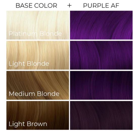We don’t want to rain on anyone’s parade, but Purple AF is one of our faves. This deep, true purple is a versatile color that works well on a variety of base colors from platinum to light brown, giving deep tints of color to darker hair and showing vibrantly on lightened hair. It even works well to cover up other faded colors!