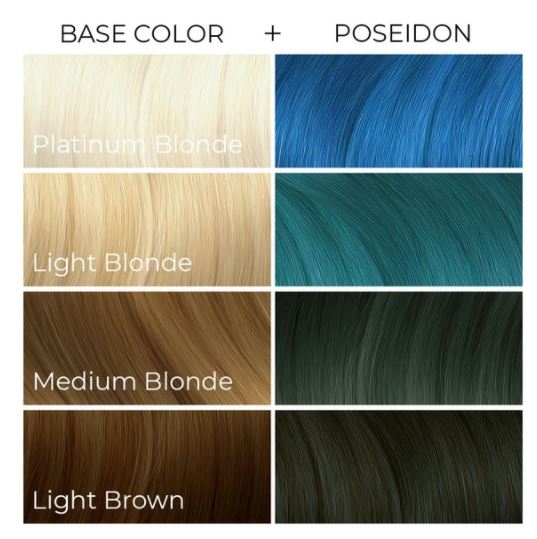 Make some serious waves with this mythical shade. Poseidon is a vibrant, medium true blue. For the most vivid results, this oceanic color should be applied to hair that has been pre-lightened to a cool-toned level 8 or lighter.