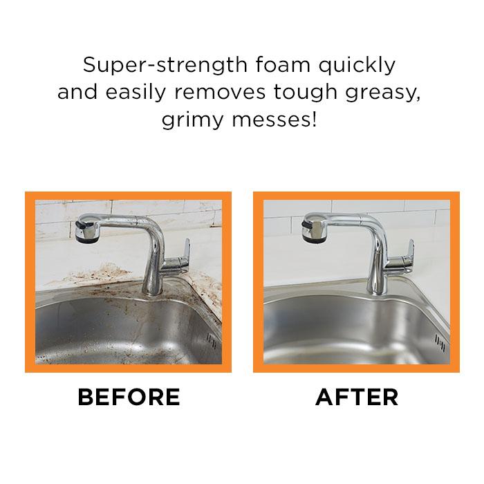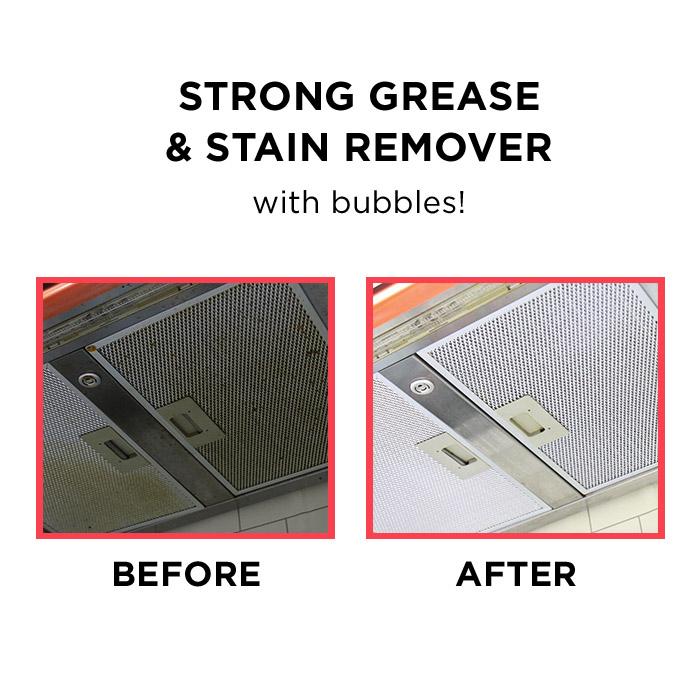 Clean hard-to-remove grease stains—no scrubbing required. Super-strength formula with a double-solvent solution blend for those pesky grease stains on range hoods, stovetops, burner grates, BBQ grills, sinks, and more! Just spray and watch foaming bubbles go to work.