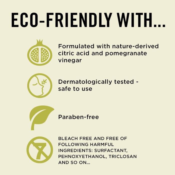 Featuring a naturally derived formula of citric acid and pomegranate vinegar, these multiuse cleaning wipes remove dirt, spills, and grime from hard surfaces like the table, sink, refrigerator, and tile. No rinsing is required, just wipe!