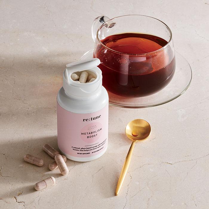 Rev up your metabolism with re:tune Inner Beauty Metabolism Boost. This all-natural plant-based supplement works by increasing heat at the cellular level to boost your metabolism* and help burn more calories.*