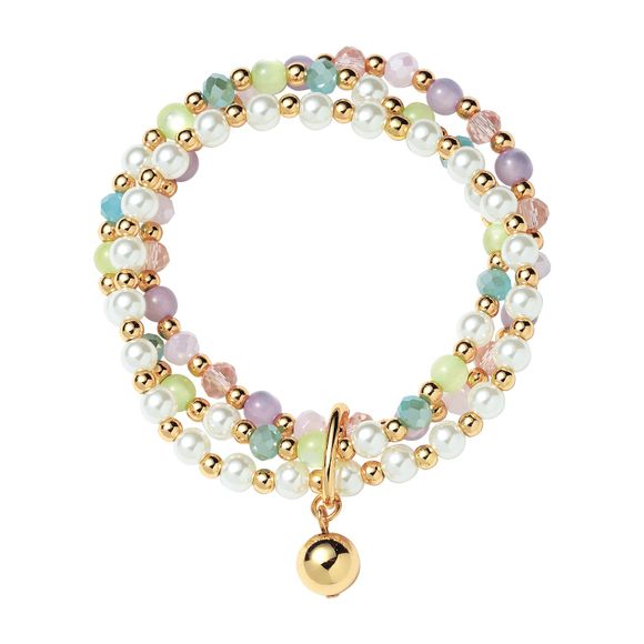 Crafted with a bouquet of dreamy multicolored beads and pearl accents set in gold tone, this triple-layered bracelet set is pastel perfection.