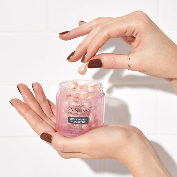 Jump-start collagen production with Isa Knox Anew Clinical Collagen Booster Rejuvenating Serum Ampoules. Each ampoule features a single-use amount of serum containing a powerful peptide blend that boosts the body’s natural production of collagen so skin looks instantly smoother
