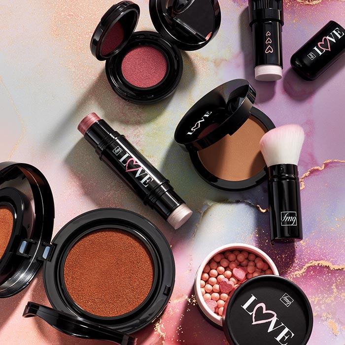 Too-light, neutral blush shades can leave you looking washed out. But loud, super bright colors can look gaudy or juvenile. Instead, play in the middle with pastel pinks and peaches. Swirl a big fluffy brush over the blush, then dust the color on the apples of your cheeks and blend upwards. Add some color with the fmg Colors of LOVE collection, giving you a glow with many options like the Cushion Technology, a stick to glide a swatch of glow or even illuminating beads to add to those cheekbones.