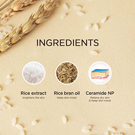 • Formulated with rice extract and rice bran oil to leave skin moisturized and brightened