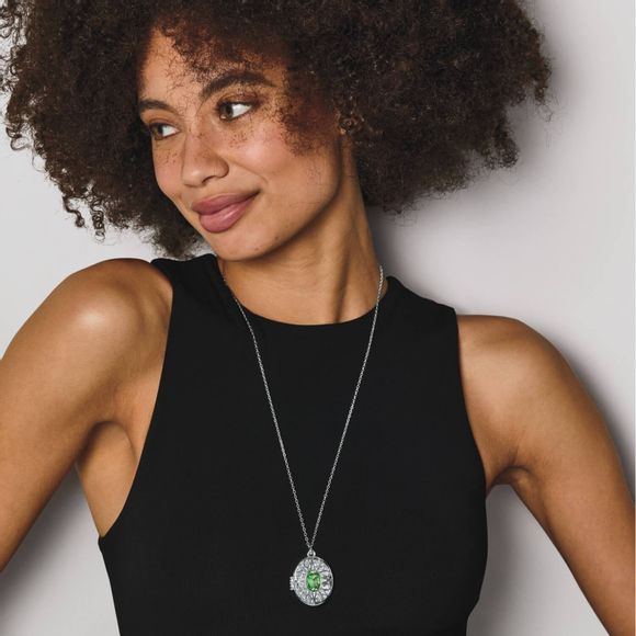 Capture treasured moments in a bejeweled locket with a birthstone-color glass stone set in vintage-style silvertone. Functional locket fits a 28mm H x 22mm W photo. Choose from 12 months of birthstone-colored glass stones.