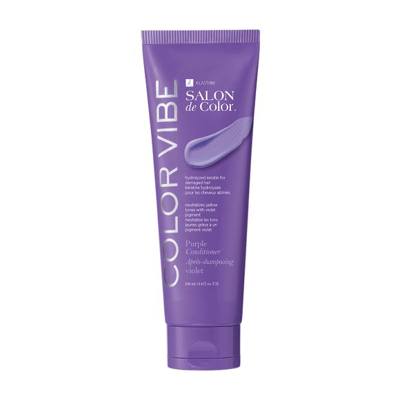 Formulated with hydrolyzed keratin, panthenol and collagen, Elastine Salon de Color Color Vibe Purple Shampoo & Conditioner helps visibly repair damaged hair and bring back a healthy shine while protecting and defining your hair color.
