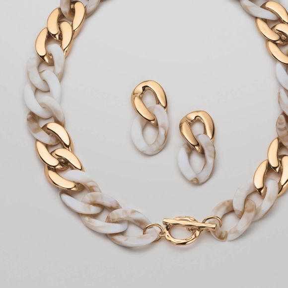 From the Luxe Link Statement Collection, this set is designed for those who love to make a bold statement. The chunky links with marble-like swirls and goldtone accents exude a modern yet timeless elegance. Here’s why this set is a must-have: