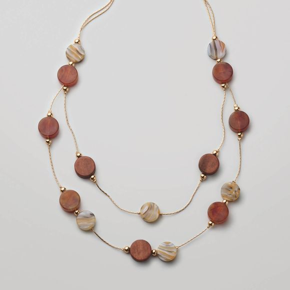 - Crafted of warm wood tones and neutral beads with goldtone spacers