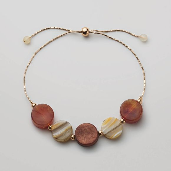 Celebrate the spirit of nature year-round in an all-season bracelet crafted of warm wood tones and neutral beads with goldtone spacers.
