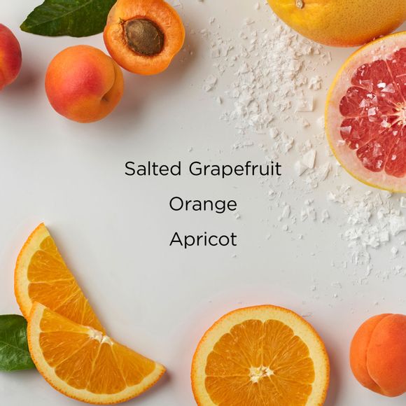 - Top: Salted Grapefruit, Orange, Lemon, Lime Leaf