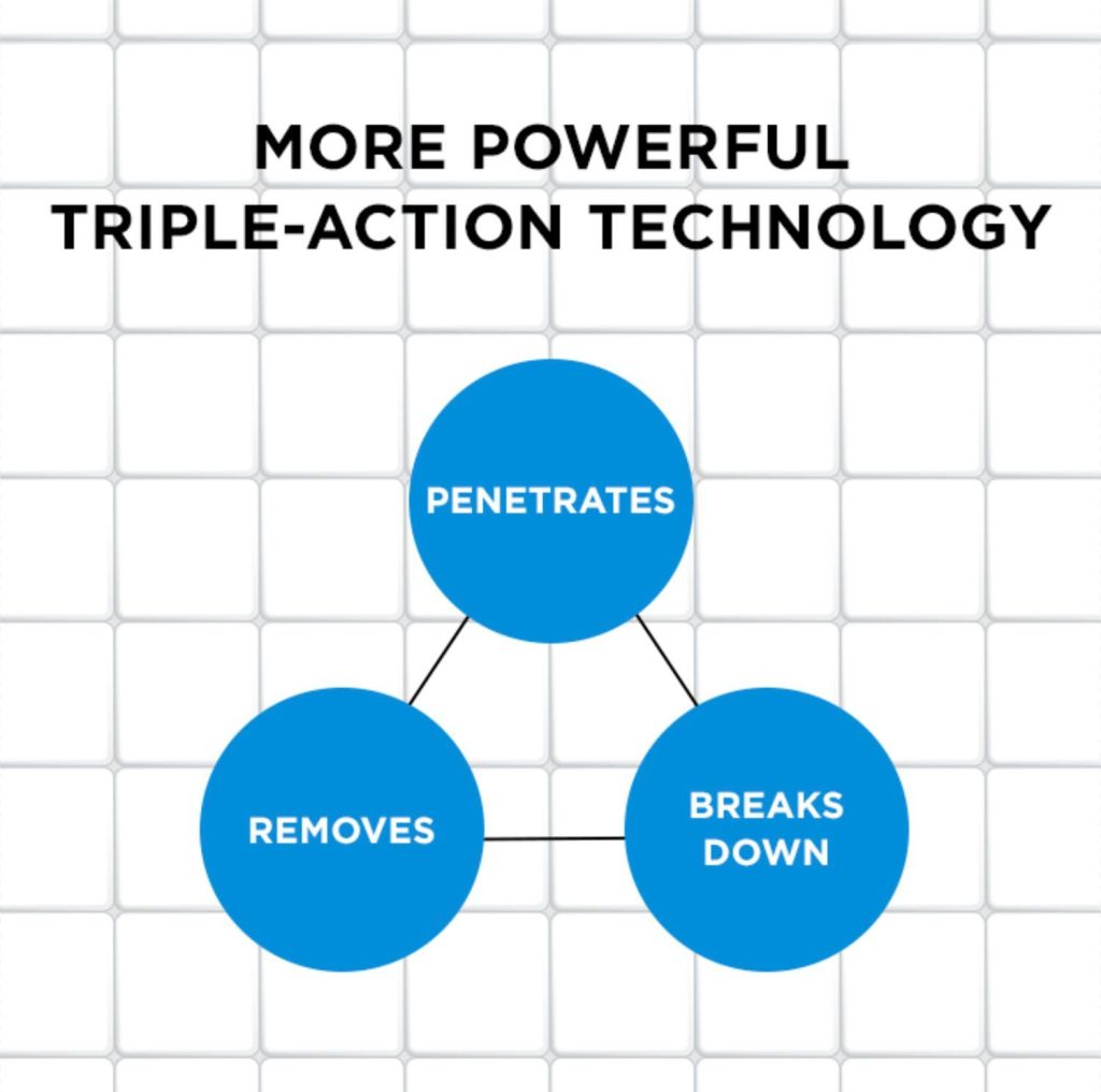 - Triple-action formula to tackle grime, soap scum, and limescale