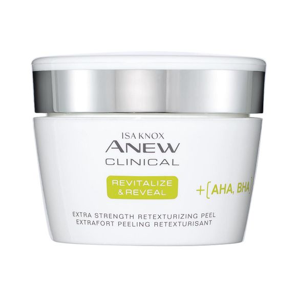 For those seeking a professional-grade peel, the Isa Knox Anew Clinical Revitalize & Reveal Extra Strength Retexturizing Peel is Avon’s most concentrated treatment. With the power of Glycolic Acid (AHA) and Beta Hydroxy Acid (BHA), this peel helps to deeply exfoliate the skin, improving texture, evening skin tone, and reducing the appearance of sun spots and post-acne marks. These convenient peel pads are easy to use and perfect for anyone looking to achieve a smoother, more radiant complexion.