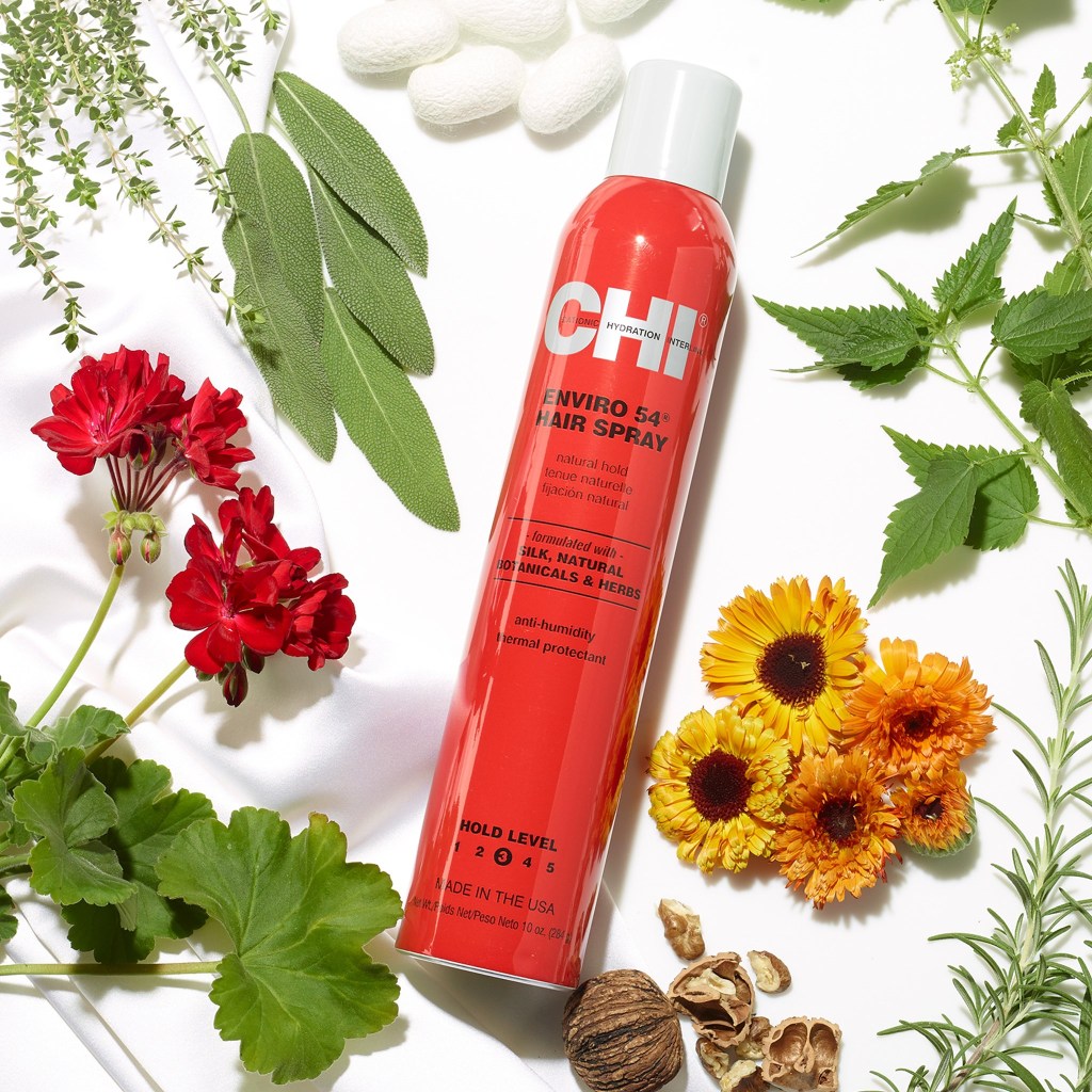 CHI® Enviro 54® Natural Hold Hairspray: Keep your style in place with this lightweight, fast-drying hairspray. It offers a brushable hold, humidity protection, and thermal protection for blow-drying, while also building hair’s strength with silk proteins.