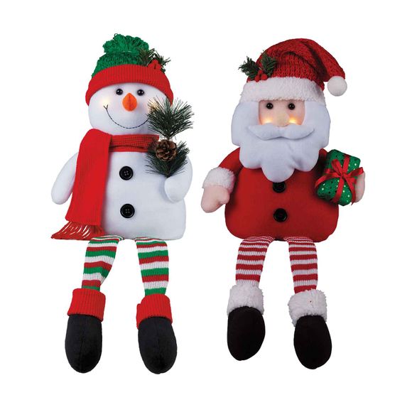 Bring home the ultimate duo of Christmas cheer with Santa and his snowman friend this Light-Up Shelf Sitter, is ready to light up your home with festive fun! This adorable shelf sitter features glowing cheeks that light up, adding a warm glow to any room. The bean bag bottom provides stability, making it easy to place on shelves, mantels, or even on a side table. Whether you’re enjoying hot cocoa by the fire or hosting a family dinner, this cute pair will spread joy wherever they sit.