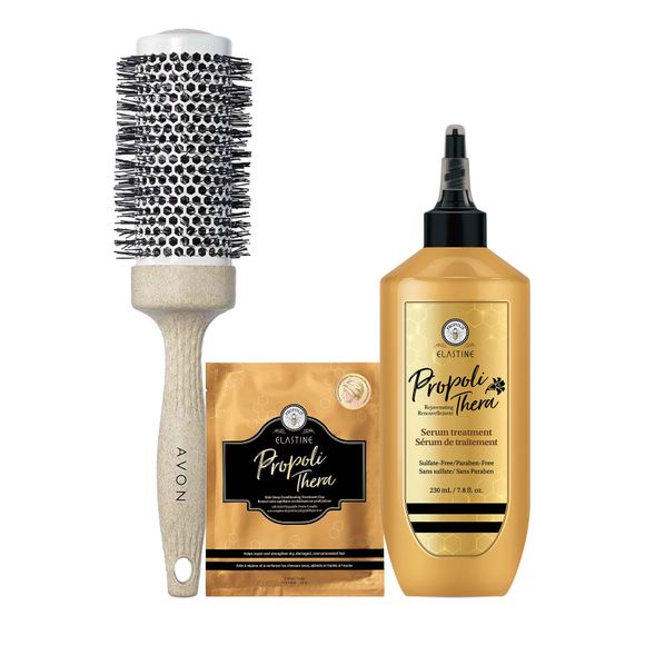 Nourish your hair from root to tip with the Elastine Propolithera Treatment Set. Featuring the Propolithera Serum Treatment, a Blow-Dry Round Hairbrush, and a Deep Conditioning Treatment Cap, this bundle strengthens, revitalizes, and adds shine to your locks, making every hair care day feel like a salon experience.