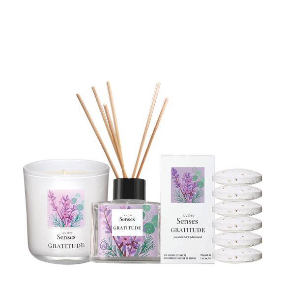 Transform your bath and body routine with Avon’s indulgent bundles designed to soothe and pamper. The Avon Senses Gratitude Lavender & Cedarwood Set offers a complete aromatic experience with a calming candle, an air diffuser, and shower steamers that envelop your space in the relaxing scent of lavender and cedarwood. It’s the perfect way to unwind and find your zen.